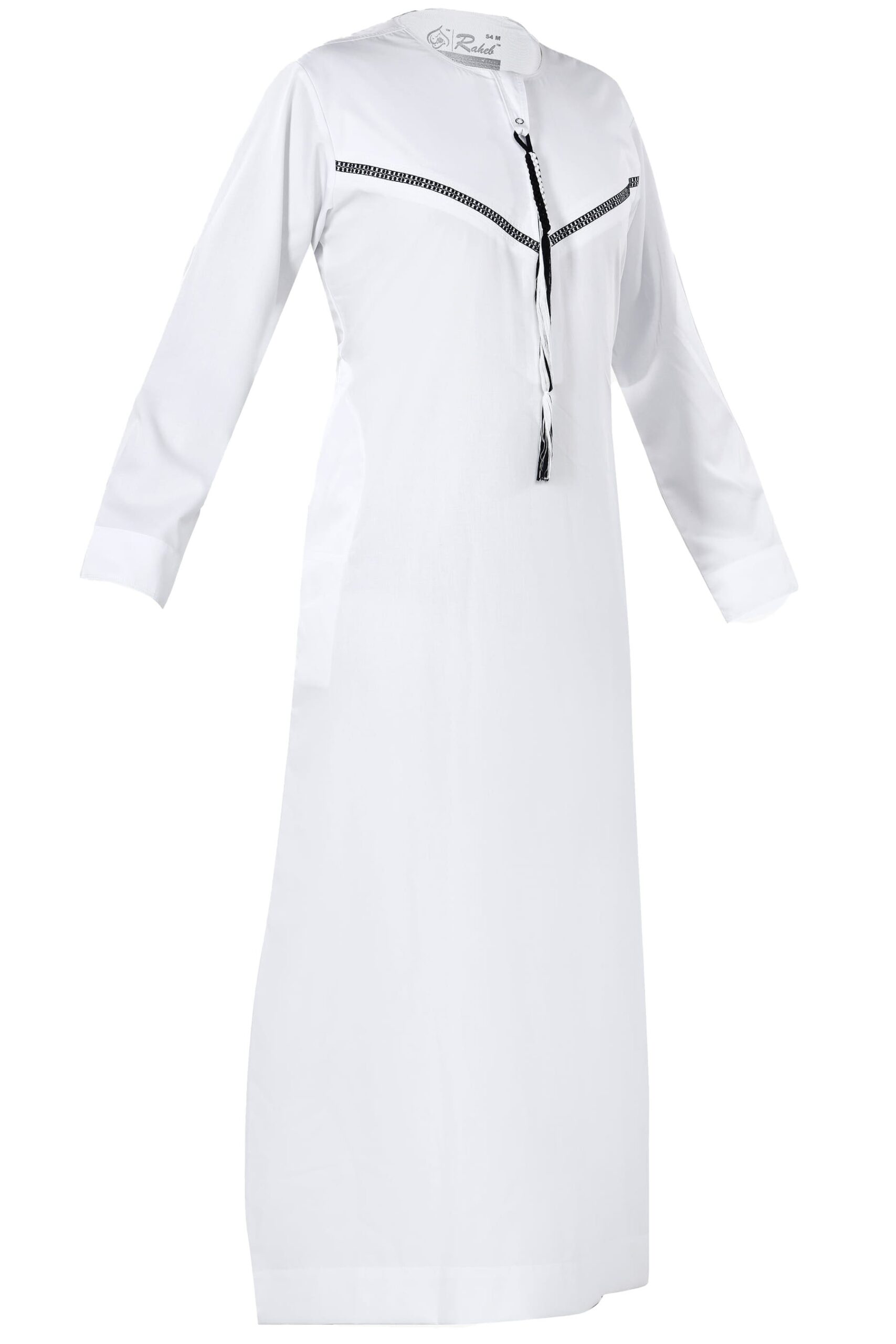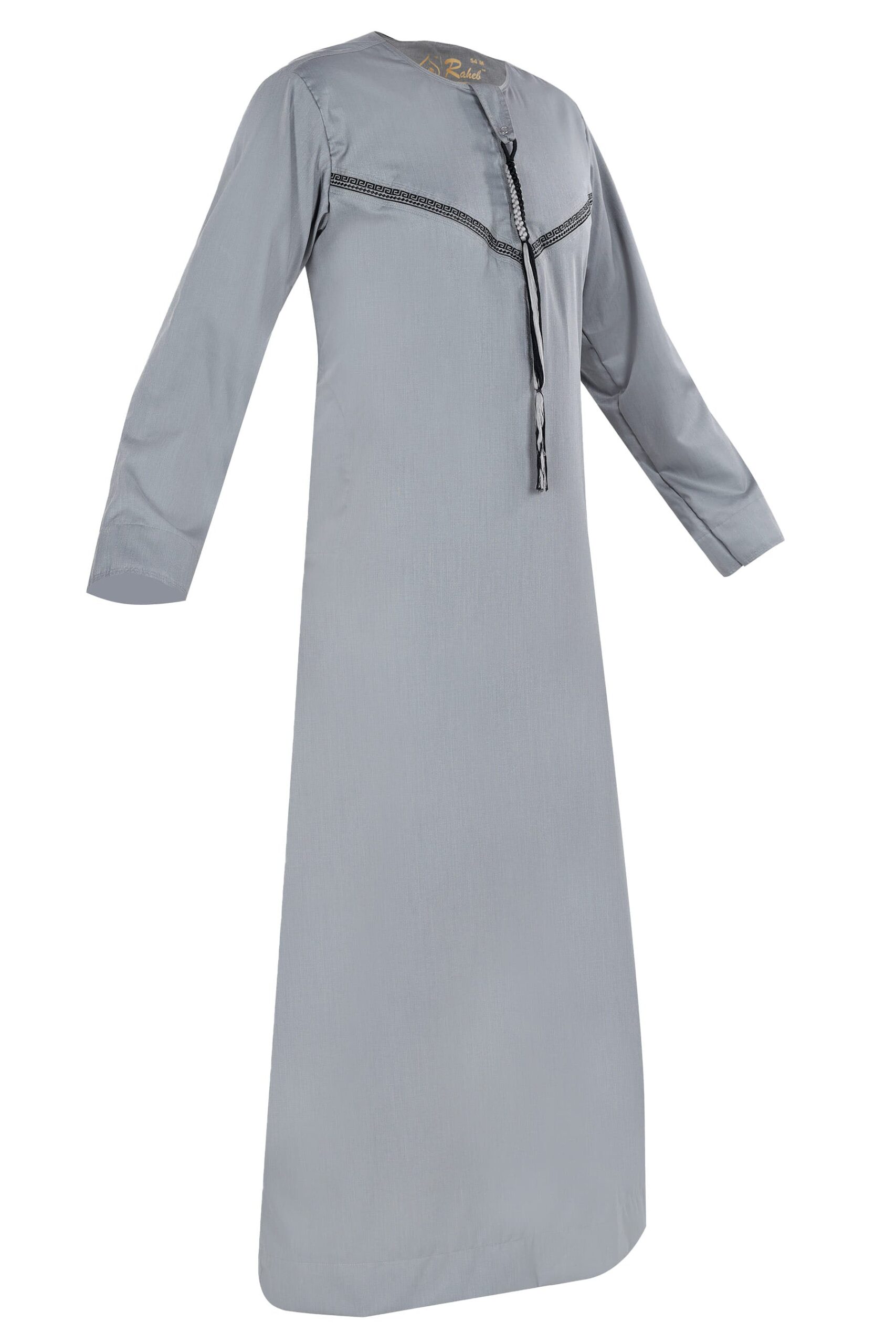 The Omani thobe is admired for its minimalistic design and refined collarless neckline, often paired with a decorative tassel. Known for its lightweight fabric, this style is ideal for hot summer days in the UK or for wearing during Jummah.